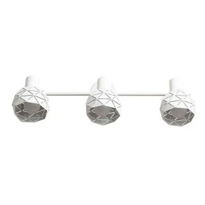 Biały spot Reus 3 to elegancki element dekoracyjny, wykonany z wysokiej jakości metalu. Charakteryzuje się stylowym wzornictwem nawiązującym do estetyki glamour. Klosze zdobione są delikatnymi wycięciami, które tworzą subtelne efekty świetlne, przyjemnie rozpraszając światło w pomieszczeniu. Całość została wykończona w eleganckim macie, co dodaje mu elegancji. Spot posiada trzy ruchome reflektorki, który umożliwiają skierowanie strumienia światła w określone miejsce. Dzięki tej funkcji będzie idealnym wyborem do sypialni obok łóżka, bądź w łazience lub przedpokoju nad lustrem. Dzięki swojemu kształtowi i wykończeniu, spot doskonale komponuje się zarówno z aranżacjami glamour, jak i klasycznymi wnętrzami. Idealnie współgra z innymi lampami z kolekcji Reus, tworząc harmonijną całość. Jego boczne, intymne oświetlenie sprawia, że świetnie uzupełnia się z lampą wiszącą, tworząc idealny duet. Spot przewidziany jest na trzy żarówki o gwincie E14.