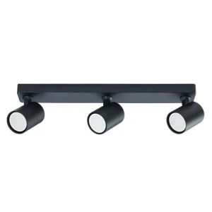 Potrójny spot z kolekcji Snow, wykonany z metalu w czarnym kolorze, przeznaczony na trzy żarówki o gwincie GU10. Spot można zamontować zarówno na ścianie, jak i suficie.