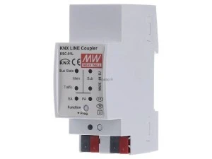 Sprzęgło liniowe KNX MEAN WELL KSC-01L umożliwia stworzenie dwukierunkowego połączenia pomiędzy dwoma liniami lub obszarami KNX, zapewniając przy tym pełną izolację galwaniczną. Funkcja filtrowania pomaga zredukować wymianę telegramów w jednej linii. Filtrowanie telegramów jest realizowane zgodnie z miejscem urządzenia w topologii i zgodnie z zaprogramowaną tabelą do komunikacji grupowej. W celu szczegółowej diagnozy wszystkie tryby i stany urządzenia są sygnalizowane przez diody LED na obudowie.