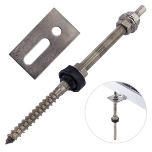 Śruba z podwójnym gwintem o średnicy M10 i długości 200 mm, przystosowana do montażu konstrukcji pod panele fotowoltaiczne na dachach płaskich oraz skośnych pokrytych blachą, blachodachówką, papą bądź gontem bitumicznym. Dzięki wykonaniu ze stali nierdzewnej A2 oraz zabezpieczeniu uszczelką EPDM, jest odporna na warunki atmosferyczne, a co za tym idzie nie utraci swoich właściwości przez długie lata.