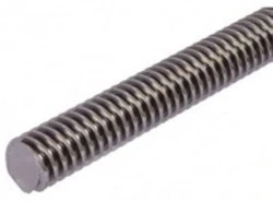 Śruba ołowiana - stal. Trapezoidalne, zwijane gwinty są bardzo przydatne w przypadku pracy z dużym obciążeniem lub wymagających dużej dokładności. Konstrukcja ze stali walcowanej (C45) zapewnia doskonałą twardość i wykończenie powierzchni, zapewniając doskonały współczynnik tarcia i większą trwałość nakrętki z ołowianymi śrubami w porównaniu z gwintami obrobionymi. Kąt wyprzedzenia wynoszący mniej niż 5° powoduje samoczynne zablokowanie tych śrub ołowianych i zmniejsza wymagany moment dokręcania. Mocniejsze i twardsze niż równoważne śruby z gwintem kwadratowym z ołowianym gwintem z gwintem o kształcie trapezoidalnym można stosować w różnych zastosowaniach, w tym w tokarkach, frezach, elektrycznych układach liniowych i pomiarowych. Śruby stalowych przewodów Gwinty walcowane precyzyjnie 0,1 mm na 300 mm dokładności odprowadzeń 0,5 mm na 300 mm prostoliniowość Prawy gwint