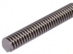 Śruba ołowiana - stal. Trapezoidalne, zwijane gwinty są bardzo przydatne w przypadku pracy z dużym obciążeniem lub wymagających dużej dokładności. Konstrukcja ze stali walcowanej (C45) zapewnia doskonałą twardość i wykończenie powierzchni, zapewniając doskonały współczynnik tarcia i większą trwałość nakrętki z ołowianymi śrubami w porównaniu z gwintami obrobionymi. Kąt wyprzedzenia wynoszący mniej niż 5° powoduje samoczynne zablokowanie tych śrub ołowianych i zmniejsza wymagany moment dokręcania. Mocniejsze i twardsze niż równoważne śruby z gwintem kwadratowym z ołowianym gwintem z gwintem o kształcie trapezoidalnym można stosować w różnych zastosowaniach, w tym w tokarkach, frezach, elektrycznych układach liniowych i pomiarowych. Śruby stalowych przewodów Gwinty walcowane precyzyjnie 0,1 mm na 300 mm dokładności odprowadzeń 0,5 mm na 300 mm prostoliniowość Prawy gwint