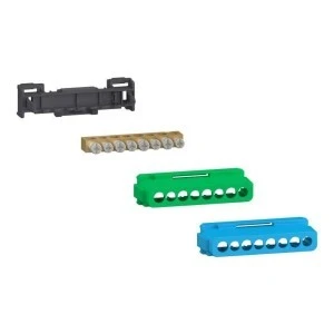 To akcesorium przyłączeniowe Linergy to zestaw listew bloków zaciskowych zawierający zacisk do podłączenia okablowania, 2 osłony i wspornik listwy zaciskowej. Zapewnia 8 wyjść, 4x16mm² i 4x10mm² (połączenia śrubowe). Służy do połączenia uziemienia lub połączenia neutralnego. Prąd znamionowy wejściowy In wynosi do 80A. Napięcie znamionowe Ue wynosi do 440VAC. Napięcie izolacji znamionowej Ui wynosi 750V. To urządzenie jest kompatybilne z serią PrismaSet XS z obudową 13 modułów lub 18 modułów, a także z obudowami Resi9 MP, Easy9 EU i Mureva. Można zamontować na stelażu lub na szynie DIN w celu instalacji modułowej. Kolor wspornika listwy zaciskowej jest czarny. Klient może wybrać niebieską pokrywę reprezentującą neutralny blok zacisków lub zieloną pokrywę listwy zacisków uziemiających. Wspornik bloku zacisków i pokrywy są wykonane z tworzywa sztucznego, zacisk jest z mosiądzu. Temperatura przechowywania wynosi od -25°C do +60°C.