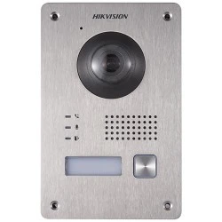 Stacja dwuprzewodowa 1080P, kamera z efektem rybiego oka, IP65, Metal odporny na wandalizm, suplement IR umożliwiający przekaz video z niedoświetlonego miejsca, Stacja wewnętrzna do wywoływania jednym przyciskiem, Interfejs dwuprzewodowy, sterowanie blokadą, RS-485. Zasilanie z DS-KAD709.