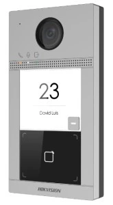 DS-KV8113-WME1(B)/Surface to zintegrowany panel bramowy wideodomofonu IP, wyposażony w kamerę Full HD o rozdzielczości 1920 x 1080 px oraz oświetlacz podczerwieni IR. Kamera posiada obiektyw szerokokątnym. Panel posiada wbudowany czytnik zbliżeniowy MIFARE obsługujący identyfikatory działające w paśmie 13,56 MHz.