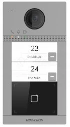 DS-KV8213-WME1(C)/Flush to zintegrowany panel bramowy wideodomofonu IP, wyposażony w kamerę Full HD o rozdzielczości 1920 x 1080 px oraz oświetlacz podczerwieni IR. Panel posiada wbudowany czytnik zbliżeniowy MIFARE obsługujący identyfikatory działające w paśmie 13,56 MHz. Łączność z innymi elementami systemu może odbywać się dwojako: bezprzewodowo, poprzez wbudowany moduł Wi-Fi oraz przewodowo, przy wykorzystaniu switcha POE i okablowania przewodem typu skrętka.