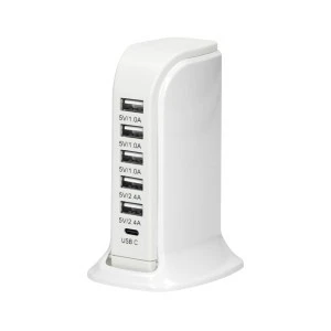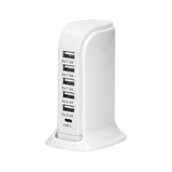 Uniwersalna ładowarka sieciowa pozwala na równoległe ładowanie 6 urządzeń poprzez USB A i USB C. Po podłączeniu odpowiedniego kabla USB (brak w zestawie) umożliwia ładowanie większości rodzajów telefonów, tabletów i urządzeń mobilnych dostępnych na rynku, w tym iPhone, iPod, iPad itd. Produkt dostępny w kolorze białym. Długość przewodu 150cm.