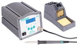 303D to cyfrowy model stacji lutowniczej firmy Quick wyposażony w elektromagnetyczny element grzejny o mocy 120W, z zakresem temperatury pracy 50C~500C oraz szeregiem funkcji ułatwiających użytkowanie, takich jak: nastawy temperatury zabezpieczone hasłem, przechodzenie w stan uśpienia, cyfrowa kalibracja temperatury,komunikaty usterek ,szybka wymiana grotów. Stacja przeznaczona zarówno do zastosowań serwisowych i przemysłowych