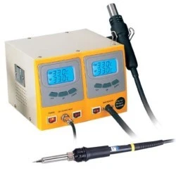 Stacja lutownicza ZD-982 przeznaczona jest do montowania i demontowania elementów i podzespołów elektrycznych i elektronicznych techniką lutowania. Temperatura grota lutownicy i strumienia powietrza jest regulowana podczas pracy przez dwa mikroprocesory z zastosowaniem wysokiej jakości czujników. Najwyższa precyzja i optymalizacja dynamicznych parametrów urządzenia uzyskana jest dzięki szybkiemu układowi regulacyjnemu, zaprojektowanemu specjalnie do pracy ze spoiwem bezołowiowym. Regulowany w szerokim zakresie strumień powietrza zasilany z pompy membranowej o niskim poziomie hałasu. |