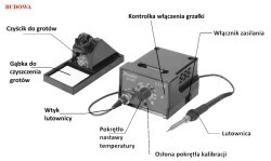 Urządzenie charakteryzuje duża funkcjonalność &ndash kolba z ergonomicznym uchwytem izoluje przed temperaturą, a stojak z uchwytem do odłożenia kolby i tacką z gąbką czyszczącą zapewnia duży komfort użytkowania stacji lutowniczej. Stabilna temperatura pracy urządzeń oraz wymienna ceramiczna grzałka gwarantują szybkie nagrzewanie się końcówek roboczych, a tym samym zapewnia precyzyjność wykonywanego lutowania.