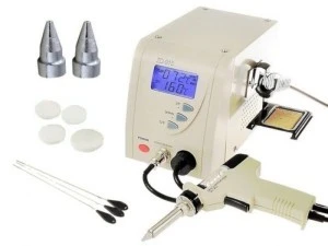 Stacja lutownicza/rozlutownica ZD-915 to wysokiej jakości urządzenie służące do lutowania/wylutowywania podzespołów elektronicznych z obwodów drukowanych PCB. Pistoletowa rękojeść z funkcją rozlutowywania umożliwia łatwe i szybkie usunięcie cyny z jednostronnych i dwustronnych obwodów drukowanych. Wbudowany czujnik PTC umożliwia płynną regulację temperatury i utrzymuje jej na stałym poziomie na końcówce grota - automatycznie kontrolowany przez mikroprocesor, dzięki czemu grot ma stałą i precyzyjnie ustawioną temperaturę. Krótki czas nagrzewania i duża moc grzałki 80W umożliwiają wygodną pracę podczas przeprowadzania operacji lutowniczych. Kompaktowy wygląd i prosta obsługa. Wymienne końcówki lutownicze.