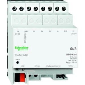 Stacja pogodowa REG-K poczwórna, jasnoszary. rodzina produktów: KNX - typ produktu: czujnik - typ magistrali: KNX - funkcja dostępna: stacja pogodowa zintegrowana z czujnikiem, z DCF77 - odcień koloru: jasno szary - kod koloru: RAL 7035. Zalety: System KNX Schneider Electric proponuje jedno kompleksowe rozwiązanie osadzone w międzynarodowych standardach i produkowane przez wielu producentów, oferujące maksymalną elastyczność, komfort, bezpieczeństwo i efektywność instalacji elektrycznej zwłaszcza w przypadku nowych budynków. Idea KNX jest tak prosta, że aż genialna. KNX łączy wszystkie główne funkcje dotyczące zarządzania instalacją elektryczną w budynku, a mianowicie oświetlenie, ogrzewanie, klimatyzacja które to są połączone w inteligentny system, który pomaga obniżyć koszty operacyjne wynikające w znacznej oszczędności energii. System KNX zwiększa elastyczności instalacji i jej dostosowanie do przyszłych, zmieniających się w czasie funkcji budynku.... Zastosowanie: Rozwiązania KNX Schneider Electric są adresowane do budynków komercyjnych, jak również wysokiej klasy rezydencji:, Budynki biurowe, Budynki użyteczności publicznej, Hotele, Szkoły, Szpitale, Sklepy i centra handlowe, Rezydencje i apartamenty -. Zarządzanie funkcjami budynku dzięki KNX jest jednym z najbardziej efektywnych wariantów zmniejszenia konsumpcji energii i poprawy efektywności jej zużycia. Szczególnie w przypadku kompleksów biurowych, KNX uwidacznia swój potencjał....