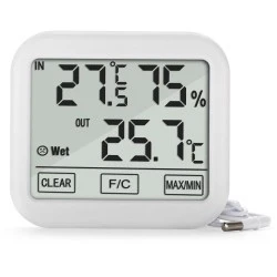 Wysokiej jakości urządzenie służące do kontroli temperatury wewnętrznej i zewnętrznej oraz wilgotności wewnątrz pomieszczeń.