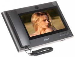 Wbudowany mikrofon, Wbudowane głośniki, Słuchawka z mikrofonem, która może być używana zamiennie z trybem głośnomówiącym, Złącze Hirose 4-pin do przyłączenia zewnętrznego mikrofonu, 1 x USB 2.0 + 1 x USB 3.0, 1 x HDMI - Wyjście wideo, max. 1024 x 600 px, Komunikacja dwukierunkowa - Audio, Płynna regulacja parametrów monitora: jasności obrazu, głośności dzwonka i rozmowy, Współpraca z kamerami IP Dahua, Redukcja szumu i echa, Możliwość bezpośredniej komunikacji między dwoma lub więcej panelami, Obsługa kart Micro SD do 512GB (możliwy zapis lokalny), Port RS-485, Interfejs sieciowy: LAN - 100/1000 Base-T, Współpraca z serwerem SIP |