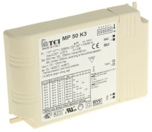 En 50172 (VDE 0108) EN 55015 EN 61000-3-2 EN 61000-3-3 En 61347-1 En 61347-2-13 EN 61547 En 62384. Sterowniki diod LED RS Multipower, seria MP 50 K3. MP 50 K3 to sterownik elektroniczny zasilany prądem stałym, wielonapięciowy i wieloprądowy, do zasilania diod LED i modułów LED. Ten sterownik diod LED zasilania wielokrotnego jest dostarczany z mikroprzełącznikiem do wyboru prądu wyjściowego. MP 50 K3 to wydajny, niedrogi sterownik, przeznaczony do oświetlenia LED niewymagającego ściemniania. Ten zasilacz zapewnia dużą moc, z aktywną funkcją PFC, elastyczny wybór prądu wyjściowego i niższe koszty w porównaniu z rozwiązaniem z możliwością przyciemniania. Sterownik wielofunkcyjny z mikroprzełącznikiem Klasa IP20, do zastosowań wewnętrznych Zabezpieczenie klasy II przed porażeniem elektrycznym Regulator współczynnika mocy czynnej Ochrona przed przegrzaniem, zwarciami, skokami napięcia i przeciążeniami