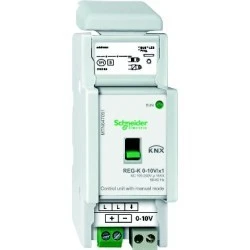 Sterownik 0–10 V KNX REG-K pojedynczy z uruchamianiem ręcznym, jasnoszary. rodzina produktów: KNX - typ produktu: urządzenie sterujące 0–10 V - tryb pracy: MANUAL, system magistralny KNX - typ magistrali: KNX. Zalety: System KNX Schneider Electric proponuje jedno kompleksowe rozwiązanie osadzone w międzynarodowych standardach i produkowane przez wielu producentów, oferujące maksymalną elastyczność, komfort, bezpieczeństwo i efektywność instalacji elektrycznej zwłaszcza w przypadku nowych budynków. Idea KNX jest tak prosta, że aż genialna. KNX łączy wszystkie główne funkcje dotyczące zarządzania instalacją elektryczną w budynku, a mianowicie oświetlenie, ogrzewanie, klimatyzacja które to są połączone w inteligentny system, który pomaga obniżyć koszty operacyjne wynikające w znacznej oszczędności energii. System KNX zwiększa elastyczności instalacji i jej dostosowanie do przyszłych, zmieniających się w czasie funkcji budynku.... Zastosowanie: Rozwiązania KNX Schneider Electric są adresowane do budynków komercyjnych, jak również wysokiej klasy rezydencji:, Budynki biurowe, Budynki użyteczności publicznej, Hotele, Szkoły, Szpitale, Sklepy i centra handlowe, Rezydencje i apartamenty -. Zarządzanie funkcjami budynku dzięki KNX jest jednym z najbardziej efektywnych wariantów zmniejszenia konsumpcji energii i poprawy efektywności jej zużycia. Szczególnie w przypadku kompleksów biurowych, KNX uwidacznia swój potencjał....