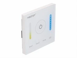 Kontroler naścienny P2 Mi-Light jest urządzeniem przeznaczonym do współpracy z białymi taśmami z regulowaną temperaturą barwową LED CCT. Kontroler LED CCT pozwala na płynną regulację jasności światła białego oraz jego temperatury. Praca urządzenia jest możliwa w zakresie 12-24V DC a maksymalna moc nie może przekroczyć 6A na kanał (72W przy instalacji 12V i 144W przy instalacji 24V) oraz 15A mocy całkowitej (180W przy instalacji 12V i 360W przy instalacji 24V). Kontroler posiada również dodatkową funkcję, wyłączenia światła po 60 sec co pomoże nam w bezpieczny sposób przedostać się w porządane miejsce.