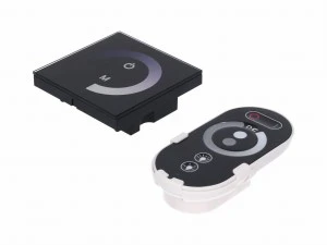 Sterownik RF w formie panelu dotykowego wraz z dedykowanym pilotem z uchwytemdo taśm jednokolorowych. Łatwy montaż przy użyciu puszki PR-BOX