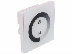 Sterownik do taśm jednokolorowych w formie białego szklanego panelu. Łatwy montaż przy użyciu