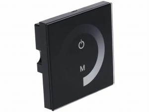 Sterownik do taśm jednokolorowych w formie czarnego szklanego panelu. Łatwy montaż przy użyciu