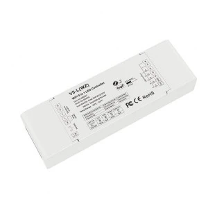 Odbiornik 5w1 przeznaczony do sterowania oraz kontroli nad wielokolorowym oświetleniem LED wraz ze zmienną temperaturą barwową (np. taśma LED RGB+CCT), ale także do monochromatycznego oświetlenia (np. taśma LED jednokolorowa) czy też oświetlenie ze zmienną temperaturą barwową CCT (np. taśma LED CCT). Produkt pozwala na dostęp do pięciu wyjść, do którego podłączone zostaje oświetlenie led. Umożliwia to swobodne ściemnianie/rozjaśnianie, sterowanie kolorów w obrębie palety RGB oraz regulację temperatury barwowej w zakresie 2700-6500K z wykorzystaniem komunikacji opartej na protokole ZigBee. Poza tym dodatkowo produkt pozwala na komunikację bezprzewodową drogą radiową, którą łączy się z urządzeniem nadawczym takim jak pilot do led bądź panel naścienny led. Urządzenie odbiorcze V5-L(WZ) cechuje się możliwością wyboru trybu pracy pomiędzy pomiędzy instalacjami MONO / CCT / RGB / RGB+W oraz RGB+CCT za pomocą ustalenia odpowiedniej sekwencji przycisków znajdujących się na obudowie urządzenia.
