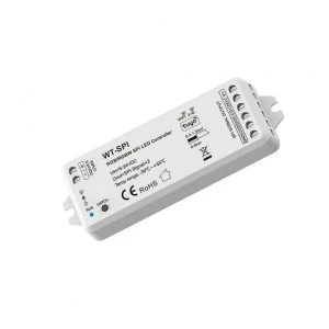 Sterownik LED SPI (WiFi) to bezprzewodowy kontroler LED, który umożliwia sterowanie oświetleniem składającym się z cyfrowego źródła światła LED (np. taśma LED cyfrowa) bez pomocy dodatkowych urządzeń. Wszystko za sprawą bezprzewodowej komunikacji poprzez sieć WiFi, która wykorzystuje do tego aplikacje Tuya Smart. Kontroler cyfrowy WT-SPI umożliwia regulację maksymalnie do 1000 pixeli, które nie przekraczają sumarycznie 8A. Sterownik WT-SPI charakteryzuje się możliwością współpracy zarówno z jednokolorowymi taśmami cyfrowymi LED jak również cyfrowymi taśmami RGB/RGB+W. Wszystko za sprawą wysokiej kompatybilności układów scalonych, z jakimi może współpracować. Posiada w swojej budowie kilkadziesiąt gotowych dynamicznych programów, które możemy w pełni programować wg. własnych zamysłów.