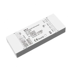 Sterownik schodowy LED ES-V to urządzenie sterujące przeznaczone do kontroli schodowych instalacji oświetlenia LED bądź różnego rodzaju ciągów komunikacyjnych. Urządzenie sterujące posiada dwa dedykowane kanały przeznaczone dla stałonapięciowych źródeł światła (np. taśma LED bądź oprawa schodowa LED). Pozwala to na stworzenie niezależnego obwodu dla oświetlenia LED, które mogą być indywidualnie skonfigurowane przy użyciu mechanicznych przycisków DIP, znajdujących się na osłonie urządzenia. Sterownik schodowy LED ES-V cechuje się prostą i logiczną konfiguracją, w posiadaniu mamy możliwość ustalenia czasu pracy czujników ruchu wraz trybem ich działania oraz regulacji sondy zmierzchu. Samo wyzwolenie sekwencji załączania może być również realizowane poprzez dedykowane wejścia dla czujników ruchu PIR bądź też zewnętrznie z użyciem wejść bezpotencjałowych lub sondy zmierzchowej.