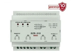 Sterownik układu SZR, 3P, styki 2P, regulacja czasu przerwy przełączania 0,1 - 10s, ustawiany priorytet sieci podstawowej SZR-2Z