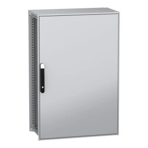 PanelSeT SFN to wolnostojąca, modułowa obudowa ze stali zdekarbonizowej dla różnych zastosowań. Zawiera stal pochodzącą z recyklingu, która jest produkowana z wykorzystaniem energii odnawialnej, co skutkuje znaczną redukcją emisji CO2. Jej nominalna wysokość, szerokość i głębokość wynoszą odpowiednio 1200 mm, 800 mm i 400 mm. Rama i wsporniki obudowy wykonane są z galwanizowanej stali, co zapewnia jej trwałość. Drzwi i panele wykonane są z blachy stalowej, a uchwyt z poliamidu 6 z dodatkiem 30% włókna szklanego. Epoksydowo-poliestrowa powłoka proszkowa zapewnia gładki wygląd. Obudowa ma kolor szary (RAL 7035) z czarnym (RAL 9005) uchwytem. Jedne pełne drzwi, jeden panel tylny, jeden dach, dwie szyny przesuwne i jeden zestaw szybko mocujących wsporników płyty montażowej. Stopień otwarcia drzwi wynosi do 120 stopni, co oznacza, że mogą być otwierane z dowolnej strony. Drzwi są wyposażone w czteropunktowy zamek z klamką, który ma 5 mm wkładkę z podwójnym prętem dla bezpieczeństwa. Obudowa posiada stopień ochrony IP55, co czyni ją odporną na przedostawanie się pyłu, wody i oleju. Jest również odporna na uderzenia, z klasą ochrony mechanicznej IK10. Dostęp z tyłu, z przodu i z boku zapewnia wygodną obsługę.
