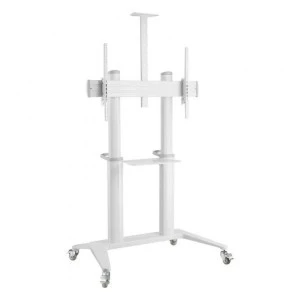 Wózek Techly ICA-TR49W, P/N: 362183 – Mobilny Stojak do Tablicy Interaktywnej lub Telewizora TV LED/LCD 70” - 120” do 140kg, Półka na Komponenty AV oraz Kamerę, Regulowany, Aluminiowy, Biały