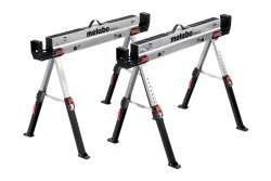 Dwa wytrzymałe i stabilne kozły stalowe z powlekaną proszkowo, ocynkowaną powierzchnią