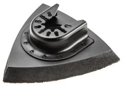 Stopa szlifierska z rzepem GRAPHITE (nr ref. 56H013) o wymiarach 83 x 83 x 83 mm pozwala przekształcić multinarzędzie GRAPHITE w szlifierkę oscylacyjną typu DELTA. System otworów pozwala na używanie razem z przystawką do odsysania pyłu w czasie pracy. Mocowanie na rzep umożliwia szybką wymianę zużytych papierów ściernych.