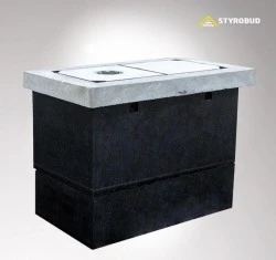 Studnia kablowa SKR-1(2) wykorzystywana do prowadzenia rur i kabli w kanalizacji 1 lub 2-otworowej. Korpus studni składa się z dwóch elementów. W korpusie znajdują się zaślepione otwory o wymiarach 150x150, po dwa na dłuższym boku oraz jeden na krótszym.