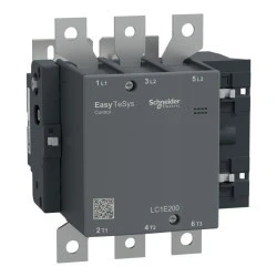 3-biegunowy stycznik Easy TeSys Control do zastosowań silnikowych do 200A 100kW przy 440V Wyposażony w cewkę 240V 50Hz AC, bez wbudowanych styków pomocniczych, połączenia zasilania i sterowania za pomocą zacisków śrubowych Szerokość 168,5 mm , częstotliwość łączeniowa do 1200 cykli na godzinę Zapewnia standardową niezawodność i trwałość - 0,5 M cykli elektrycznych dla kategorii AC-3 i 5 M cykli mechanicznych. Może pracować w temperaturze od -5°C do 55°C i być montowany na szynie DIN, bez obniżania wartości znamionowych do 3000 m n.p.m. Certyfikowany zgodnie z wieloma normami (IEC, CCC, EAC) oraz zgodny z Green Premium (RoHs/Reach).