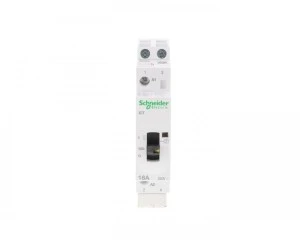 Stycznik modułowy iCT50r16-20-230 16A 2NO 50/60Hz 230/240 VAC ,o numerze A9C23712. Optyczny wskaźnik stanu styków wyjściowych, możliwość rozbudowy o styki pomocnicze Jest to urządzenie zdalnego sterowania Prąd znamionowy wynosi 16A Wytrzymałość elektryczna sięga do 100000 cykli dla AC-7A lub AC-1, 30000 cykli dla AC-7C, AC-3, AC-5A lub AC-5B. Maksymalna liczba operacji przełączania to 6 na minutę. Stopień ochrony to IP20 i IP40 w obudowie. Jest montowany na szynie DIN. To urządzenie może być używane do zdalnego przełączania obciążeń oświetleniowych, małych silników (wentylatory, miksery) lub aplikacji systemów HVAC. Jest kompatybilny ze wszystkimi pomocniczymi urządzeniami sterującymi Acti 9, do zastosowań związanych z oświetleniem, ogrzewaniem i wentylacją. Ten produkt jest zgodny z normą IEC/EN 61095.