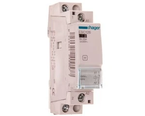 Stycznik ESC renomowanej niemieckiej firmy Hager o prądzie znamionowym 25A 230V. Posiada 1 styk rozwierny. Produkt jest dobrze wykonany z solidnego tworzywa przez co nie następuje jego uszkodzenie przy dokręcaniu co nie jest takie oczywistę przy chińskich konkurencyjnych produktach. Produkt przystosowany jest do pracy w temperaturach od -10 do 50°C. Produkt cechuje spora wytrzymałość zarówno mechaniczna (1.000.000 cykli) jak i elektryczna (30.000 cykli).