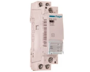 Stycznik ESL renomowanej niemieckiej firmy Hager o prądzie znamionowym 25A 12V IP20. Posiada 2 styki zwierne. Produkt jest dobrze wykonany z solidnego tworzywa przez co nie następuje jego uszkodzenie przy dokręcaniu co nie jest takie oczywistę przy chińskich konkurencyjnych produktach. Produkt przystosowany jest do pracy w temperaturach od -10 do 50°C. Produkt cechuje spora wytrzymałość zarówno mechaniczna (1.000.000 cykli) jak i elektryczna (30.000 cykli).