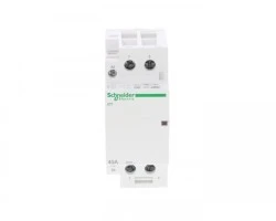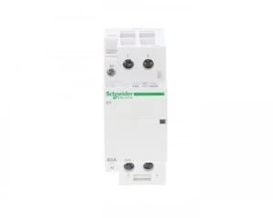 Acti 9 jest serią marki SCHNEIDER ELECTRIC posiadającą najwyższej klasy urządzenia przeznaczone do zarządzania zasilaniem elektrycznym. Jednym z urządzeń umieszczonych w tej kolekcji jest stycznik modułowy, którego powyższa wersja pracuje przy zmiennym napięciu wynoszącym 230 V. Napięcie cewki wynosi w jego przypadku podobnie 230 V. Znamionowy prąd pracy to 40 A. Urządzenie posiada dwa moduły. Wyposażono je w dwa styki zwierne. Głębokość wbudowania wynosi 70 mm. Stopień ochrony IP20 nie pozwala na stosowanie stycznika na wolnym powietrzu, gdyż mogłoby ulec zniszczeniu za sprawą wody i pyłu. SCHNEIDER ELECTRIC - firma będąca producentem tej aparatury - funkcjonuje na międzynarodowym rynku od 1836 roku. Dziś jest uznawany za specjalistę w dziedzinie rozdziału energii elektrycznej i produkcji przeznaczonych do tego urządzeń. Wytwarza sprzęt równej wielkości, dzięki czemu może być on podłączany do aparatury zewnętrznej różnych rozmiarów.
