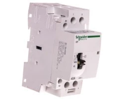 Stycznik modułowy iCT50r40-20-230 40A 2NO 50/60Hz 220/240 VAC ,o numerze A9C21842. Optyczny wskaźnik stanu styków wyjściowych, możliwość rozbudowy o styki pomocnicze Prąd znamionowy wynosi 40A Wytrzymałość elektryczna sięga do 100000 cykli dla AC-7A lub AC-1, 30000 cykli dla AC-7C, AC-7B, AC-3, AC-5A lub AC-5B. Maksymalna liczba operacji łączeniowych wynosi 100 dziennie. Stopień ochrony to IP20 i IP40 w obudowie. Jest montowany na szynie DIN. To urządzenie może być używane do zdalnego przełączania małych silników (wentylatorów, mikserów) lub aplikacji systemów HVAC. Jest kompatybilny ze wszystkimi pomocniczymi urządzeniami sterującymi Acti 9, do zastosowań związanych z ogrzewaniem i wentylacją. Ten produkt jest zgodny z normą IEC/EN 61095.