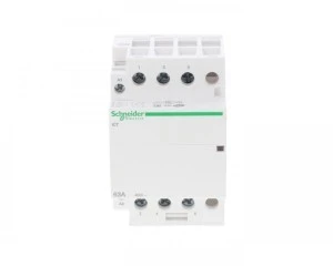Stycznik modułowy iCT50-63-30-230 63A 3NO 50Hz 220/240 VAC ,o numerze A9C20863. Optyczny wskaźnik stanu styków wyjściowych, możliwość rozbudowy o styki pomocnicze Prąd znamionowy wynosi 63A Wytrzymałość elektryczna sięga do 100000 cykli dla AC-7A lub AC-1, 30000 cykli dla AC-7C, AC-3, AC-5A lub AC-5B. Maksymalna liczba operacji przełączania to 6 na minutę. Stopień ochrony to IP20 i IP40 w obudowie. Jest montowany na szynie DIN. To urządzenie może być używane do zdalnego przełączania obciążeń oświetleniowych, małych silników (wentylatory, miksery) lub aplikacji systemów HVAC. Jest kompatybilny ze wszystkimi pomocniczymi urządzeniami sterującymi Acti 9, do zastosowań związanych z oświetleniem, ogrzewaniem i wentylacją. Ten produkt jest zgodny z normą IEC/EN 61095.