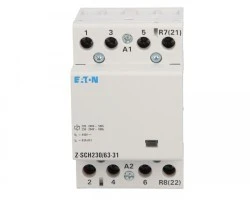 Stycznik Z-SCH230 renomowanej firmy Eatona o prądzie znamionowym 63A 230V AC. Posiada 3 styki zwierne i 1 rozwierny. Produkt jest dobrze wykonany z solidnego tworzywa przez co nie następuje jego uszkodzenie przy dokręcaniu co nie jest takie oczywistę przy chińskich konkurencyjnych produktach.