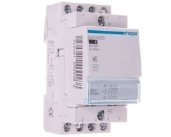 Stycznik ESC renomowanej niemieckiej firmy Hager o prądzie znamionowym 25A 230V AC IP20. Posiada 4 styki rozwierne. Produkt jest dobrze wykonany z solidnego tworzywa przez co nie następuje jego uszkodzenie przy dokręcaniu co nie jest takie oczywistę przy chińskich konkurencyjnych produktach. Produkt przystosowany jest do pracy w temperaturach od -10 do 50°C. Produkt cechuje spora wytrzymałość zarówno mechaniczna (1.000.000 cykli) jak i elektryczna (30.000 cykli).