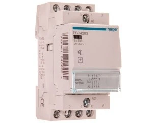 Stycznik ESC renomowanej niemieckiej firmy Hager o prądzie znamionowym 25A 230V AC IP20. Posiada styki 1 rozwierne i 3 styki zwierne. Produkt jest dobrze wykonany z solidnego tworzywa przez co nie następuje jego uszkodzenie przy dokręcaniu co nie jest takie oczywistę przy chińskich konkurencyjnych produktach. Produkt przystosowany jest do pracy w temperaturach od -10 do 50°C. Produkt cechuje spora wytrzymałość zarówno mechaniczna (1.000.000 cykli) jak i elektryczna (30.000 cykli).