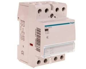 Stycznik ESC renomowanej niemieckiej firmy Hager o prądzie znamionowym 63A 230V AC. Posiada 2 styki zwierne. Produkt jest dobrze wykonany z solidnego tworzywa przez co nie następuje jego uszkodzenie przy dokręcaniu co nie jest takie oczywistę przy chińskich konkurencyjnych produktach. Produkt przystosowany jest do pracy w temperaturach od -10 do 50°C. Produkt cechuje spora wytrzymałość zarówno mechaniczna (1.000.000 cykli) jak i elektryczna (30.000 cykli).