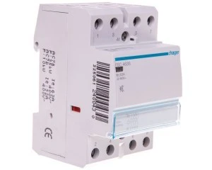 Stycznik ESC renomowanej niemieckiej firmy Hager o prądzie znamionowym 63A 230V AC. Posiada 4 styki zwierne. Produkt jest dobrze wykonany z solidnego tworzywa przez co nie następuje jego uszkodzenie przy dokręcaniu co nie jest takie oczywistę przy chińskich konkurencyjnych produktach. Produkt przystosowany jest do pracy w temperaturach od -10 do 50°C. Produkt cechuje spora wytrzymałość zarówno mechaniczna (1.000.000 cykli) jak i elektryczna (30.000 cykli).