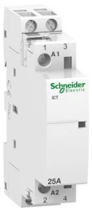 Stycznik modułowy iCT 25A 2NO 127 V 60 Hz. zastosowanie: silnik-ogrzewanie-oświetlenie - rodzina produktów: iCT - typ produktu: stycznik - opis skrócony: iCT - liczba biegunów: 2P - rodzaj sieci: AC - Kategoria użytkowania: AC-1 zgodnie z EN 60947-4-1, AC-3 zgodnie z EN 60947-4-1, AC-5A zgodnie z EN 60947-4-1, AC-5B zgodnie z EN 60947-4-1, AC-7A zgodnie z EN 61095, AC-7A zgodnie z IEC 1095, AC-7B zgodnie z EN 61095, AC-7B zgodnie z IEC 1095 - typ sterowania: zdalne sterowanie. Zalety: Efektywność na którą zasługijesz, Łatwy dobór wśród jedno- do czteropolowych styczników o szerokim zakresie prądów znamionowych zgodnych z wymaganiami norm DIN, Satysfakcjonujący kompletny system modułowy, Elastyczne zestawienia wyposażenia pomocniczego o prostym systemie mocowania zatrzaskowego, Współpracuje z wszystkimi produktami Acti 9.... Zastosowanie: - Monitorowanie i sterowanie obwodami elektrycznymi w budownictwie przemysłowym, powszechnym i mieszkaniowym, Monitorowanie i sterowanie obwodami odbiorczymi odbiorników jedno- i trójfazowych o poborze prądu do 100A., Łączenie między sterownicą i obwodami głównymi dla sterowania obwodami odbiorczymi takimi jak: oświetlenie, ogrzewanie, rolety, system wodny, piece, małe silniki, wentylatory, pompy cieplne itp....