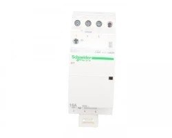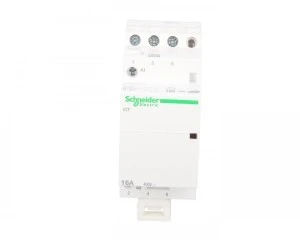 Stycznik modułowy iCT — 3-biegunowy — 3 NO — 16A — 220..240 V AC. zastosowanie: silnik-ogrzewanie-oświetlenie - rodzina produktów: iCT - typ produktu: stycznik - opis skrócony: iCT - liczba biegunów: 3P - rodzaj sieci: AC - Kategoria użytkowania: AC-1 zgodnie z IEC 60947-4, AC-3 zgodnie z IEC 60947-4, AC-5A zgodnie z IEC 60947-4, AC-5A zgodnie z IEC 61095, AC-5B zgodnie z IEC 60947-4, AC-5B zgodnie z IEC 61095, AC-7A zgodnie z IEC 61095, AC-7B zgodnie z IEC 61095 - typ sterowania: zdalne sterowanie. Zalety: Efektywność na którą zasługijesz, Łatwy dobór wśród jedno- do czteropolowych styczników o szerokim zakresie prądów znamionowych zgodnych z wymaganiami norm DIN, Satysfakcjonujący kompletny system modułowy, Elastyczne zestawienia wyposażenia pomocniczego o prostym systemie mocowania zatrzaskowego, Współpracuje z wszystkimi produktami Acti 9.... Zastosowanie: - Monitorowanie i sterowanie obwodami elektrycznymi w budownictwie przemysłowym, powszechnym i mieszkaniowym, Monitorowanie i sterowanie obwodami odbiorczymi odbiorników jedno- i trójfazowych o poborze prądu do 100A., Łączenie między sterownicą i obwodami głównymi dla sterowania obwodami odbiorczymi takimi jak: oświetlenie, ogrzewanie, rolety, system wodny, piece, małe silniki, wentylatory, pompy cieplne itp....