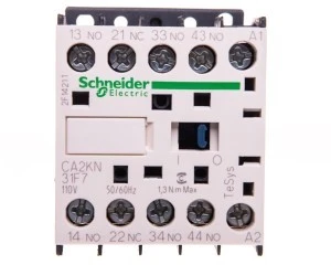 Stycznik pomocniczy TeSys K, 4 styki (3NO + 1NC), 10A/690V, do sterowania obciążeniami elektromagnetycznymi AC-15/DC-13. Zapewnia obwód sterowania 110V 50/60Hz AC, podłączenie za pomocą zacisków skrzynkowych. Przy wysokiej częstotliwości pracy do 180 cykli/min i temperaturze otoczenia -25/+50°C, zapewnia wysoką niezawodność i trwałość. Kompaktowy (szerokość 45 mm), do mocowania na szynie DIN 35 mm lub za pomocą śrub. Certyfikat zgodności z wieloma normami (IEC, UL, CSA, CCC, EAC), produkt oznaczony ekologicznym znakiem Green Premium (RoHS/REACh).
