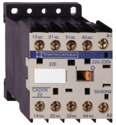 Stycznik pomocniczy 3 NO+1 NC, cewka sterująca 230 V AC. Zakres: TeSys - typ produktu: przekaźnik sterujący - opis skrócony: CA2K - zastosowanie: Obwody sterowania - Kategoria użytkowania: AC-15, DC-13 - kombinacja styków: 3 NO + 1 NC. Zalety: .. Zastosowanie: ..