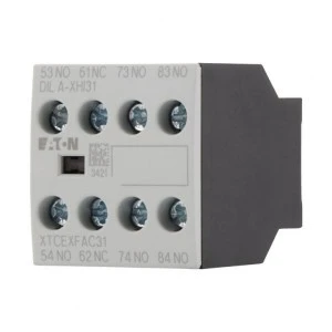 Moduł styków pomocniczych Eaton z serii Moeller® DILA to czołowy blok styków, który rozbudowuje stycznik o dodatkowe tory pomocnicze do realizacji funkcji sterowania i sygnalizacji.